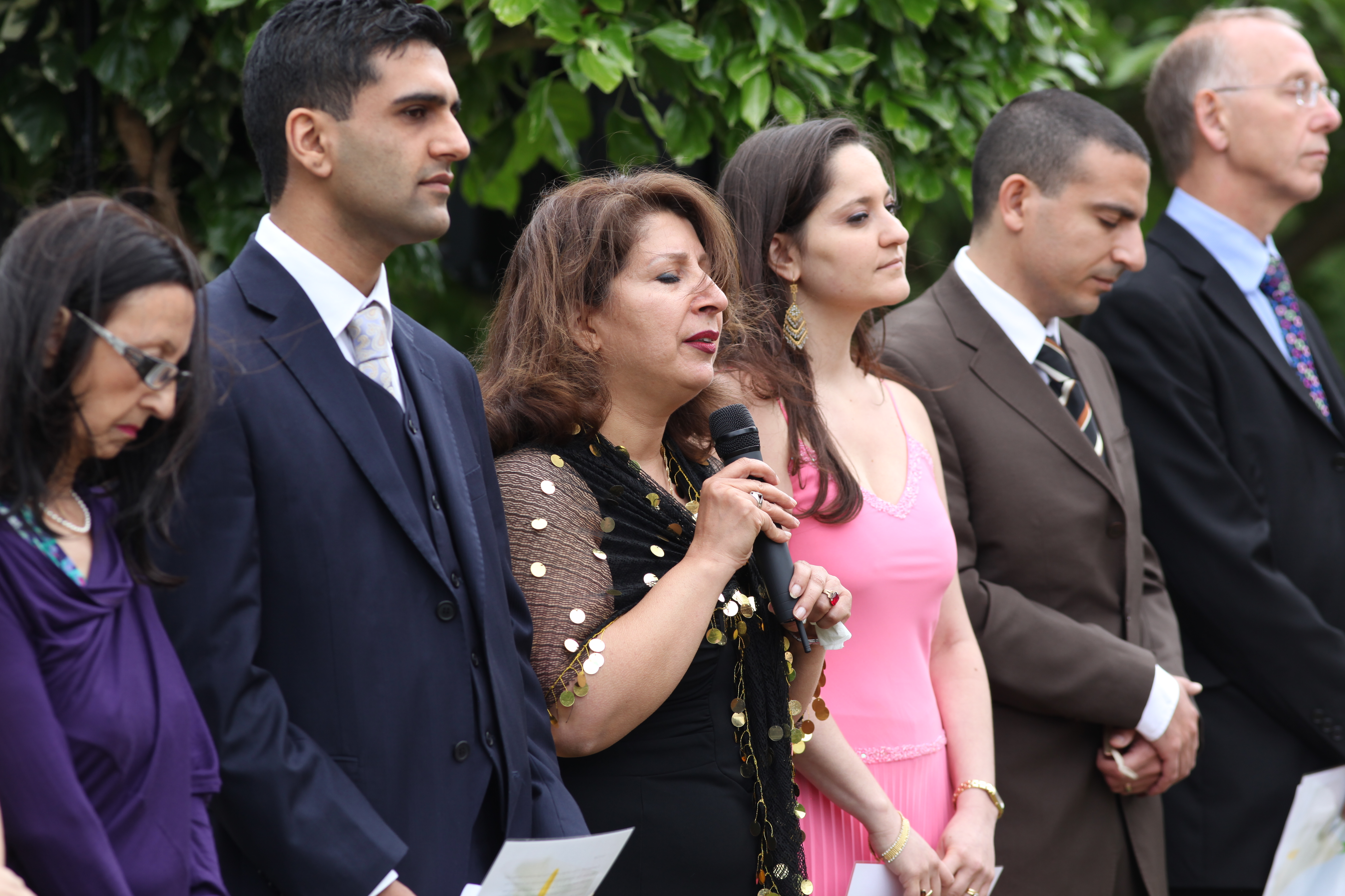 The wedding guests had travelled from as far afield as The Netherlands, Spain, Brazil, Swaziland and the USA. The Bahá’í programme reflected this global nature of the gathering, with prayers and passages from the Bahá’í Scriptures read and chanted in six languages.